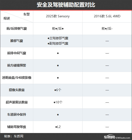 新款车型依旧配备了丰富的主/被动安全配置,并且还增加了后排侧气囊、主/副驾膝部气囊、前方碰撞预警等,安全配置得到进一步完善。此外,新款车型的驾驶辅助配置也同样得到提升,配备了6个摄像头、10个超声波雷达数量,并增加了车道居中保持等功能,辅助驾驶等级达到L2级。