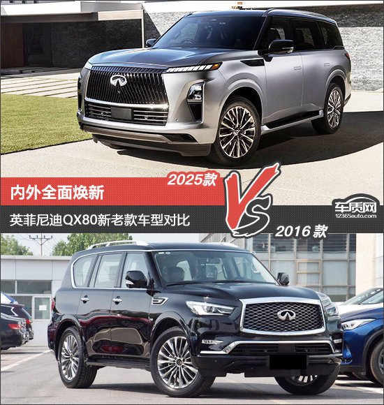 英菲尼迪QX80(配置|询价)相信大家并不陌生,凭借极具气场的外观设计以及出色的乘坐体验,在大型SUV市场中占据了一席之地。不过随着时代的快速发展,消费者的购车需求也发生了翻天覆地的变化。为此,英菲尼迪在前不久带来了2025款英菲尼迪QX80。那么新款车型相比老款车型都有哪些变化?让我们通过本次新老款车型对比来一探究竟。