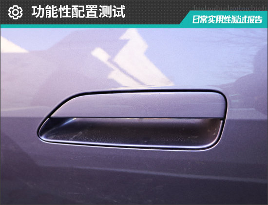 评测车配备全车无钥匙进入功能,支持蓝牙钥匙和NFC/RFID钥匙,而传统的遥控钥匙却需要选装才能得到。由于评测车仅配备NFC/RFID钥匙,且并未连接蓝牙钥匙,因此没能针对无钥匙进入功能进行实际测试。