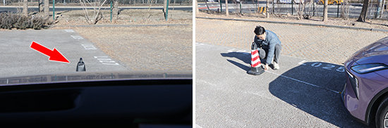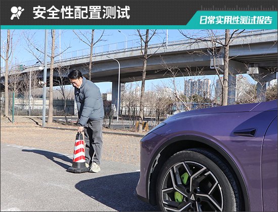 在前方视野测试中,我们采用高70cm的桩桶作为参照物,随后调整车距,直至在主驾驶位可以看到桩桶上沿。经过测试,桩桶与车头最终测得的数据为1.853m,在测试过的同级别车型中处于上游水平。