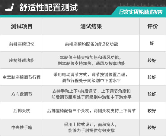 二、舒适性配置测试