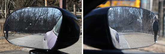 评测车的左/右外后视镜均采用普通镜片,经实测,左、右外后视镜视野范围分别为26.2°和18.4°,在测试过的同级别车型中分别处于上游和中下游水平。