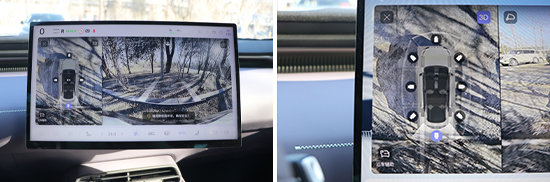 评测车配备360度全景影像、车侧盲区影像以及透明底盘/540度影像,不仅画面清晰度表现出色,而且对于畸变控制得也十分得当。影像画面内带有可随动转向的倒车辅助线以及雷达探测距离的数字提示,可以为驾驶员提供有效参考。