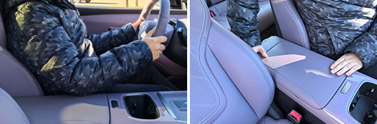 前排中央扶手箱采用上掀式设计,不仅面积宽大,而且表面还采用了软质材料进行包裹,触感相当舒适。正常驾驶坐姿下,其能够为驾驶员的手肘提供有效支撑。