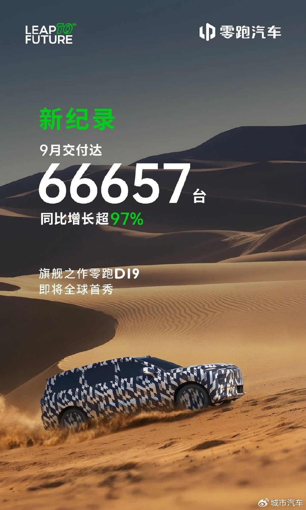 前阵子的“限高”新闻并没能影响到零跑汽车的发展势头,9月新势力销量榜单中,零跑汽车表现最为抢眼,全系交付达66657台,同比增长超97%,环比增长16.81%,不仅刷新了自身纪录,也创下了中国造车新势力的单月交付最高纪录。与此同时,零跑已连续七个月稳居新势力销冠。