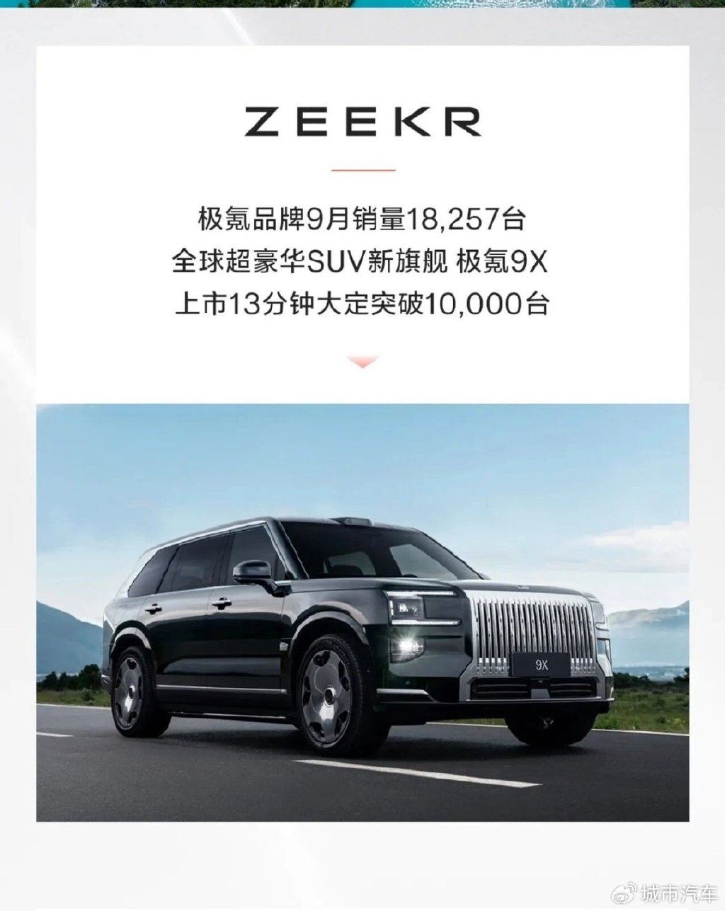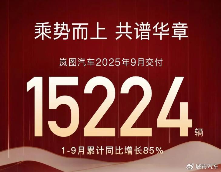岚图汽车9月交付15224辆,同比增长52%,再创历史新高,1-9月累计同比增长85%,表现稳健。智己汽车9月销量为11107台,环比增长81.8%,创品牌历史新高,显示出品牌影响力的持续提升。