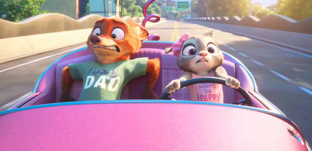 杰拉德·布什:第一部的时候,当我们被问到,我们说朱迪大约24、25岁,大概那个区间,尼克大概31、32、33岁。所以,如果我们延续这个,进入第二部的时候,他们大概年长了一年,再多一点点。因为如果你记得《动物城1》的结局,之间尼克去了警校接受训练,我们认为大概经过了一年。但是应和拜伦的观点:有一些动物的寿命非常短暂,所以如果完全按照动物的寿命来设定,那会有很多死死的鼠鼠。