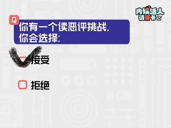 新浪娱乐:先说一下你接受读负评挑战的心理活动是什么?