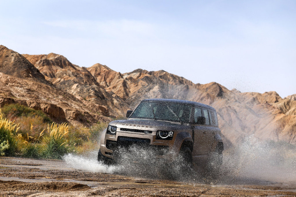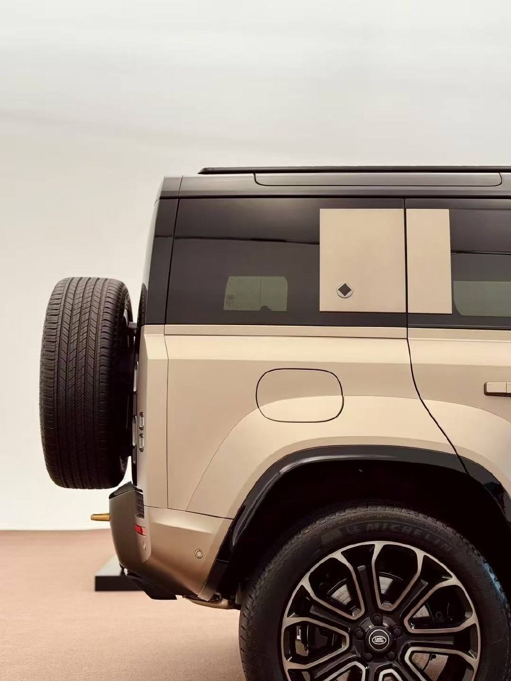 新车可选 20 英寸锻造轮毂或 22 英寸亮黑色轮毂,均配有黑色轮毂盖和哑光效果DEFENDER字样,而亮黑色制动卡钳则点缀着醒目的银色字样。