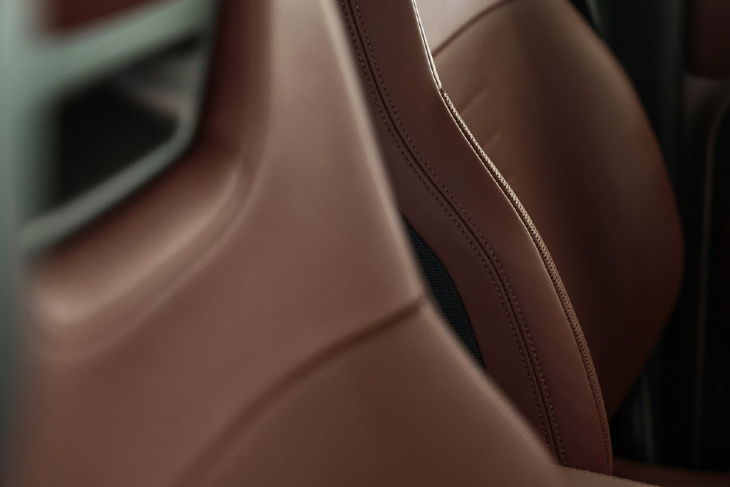 新车内饰标配赤陶红/檀色缝线的半苯胺皮革,与檀色内饰的Kvadrat™座椅,经无缝饰面工艺和横向纹理设计的雕琢,兼顾奢华细腻触感与实用养护性。