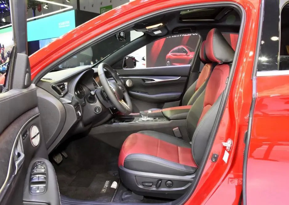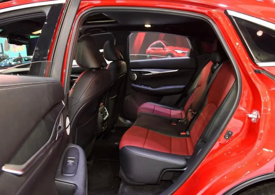 内饰部分,新车内部设计照搬了QX50,不过配色上做了变动,新车加入了红色装饰,搭配黑色,营造出更为活泼的氛围感,贴合了轿跑SUV的风格,同样讨好年轻人。其他方面就没有让人亮眼的设计了,依旧是熟悉的三辐式方向盘,上面的功能按键方便操作。科技方面的配备跟不上时代,传统的仪表盘,中控屏上虽然内嵌了两块液晶屏,但内置的系统功能不够强大,等同于摆设,而且样式设计同样落后于时代,没有那种科技感,反而展现出了一种老古董的感觉,显得诚意不足。这和同类型BBA车型相比,豪华性差了很多。
