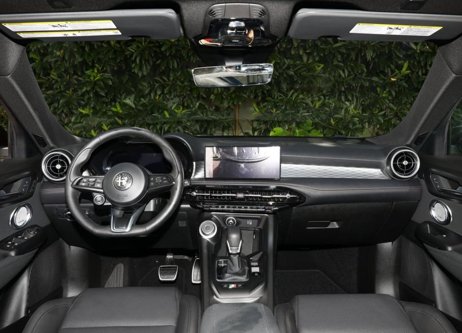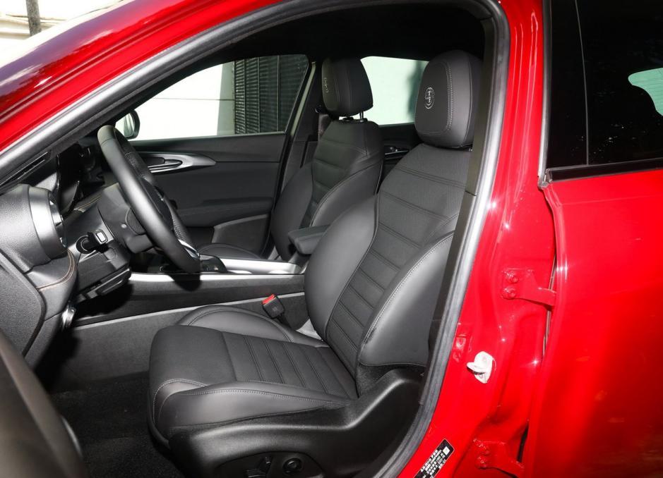 外观方面,阿尔法·罗密欧的车子有自家的设计特色,新车的辨识度很高,和斯坦维造型差不多,前脸部分有着标志性的格栅设计,两侧大灯组采用三透镜结构,内置LED光源,观感上比较深邃。按照官方的说法,灯组会根据车速进行调节,相当智能。大嘴内部的修饰和中网一样,两侧还保留了进气口,观感更加运动。