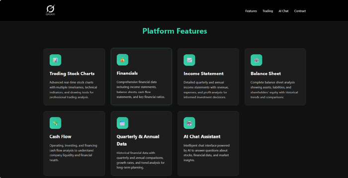 Grok Finance首页展示的平台特点