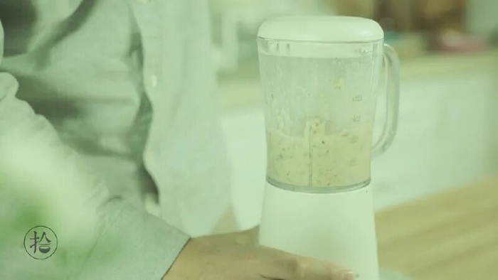 板栗加牛奶,用料理机打成栗蓉。