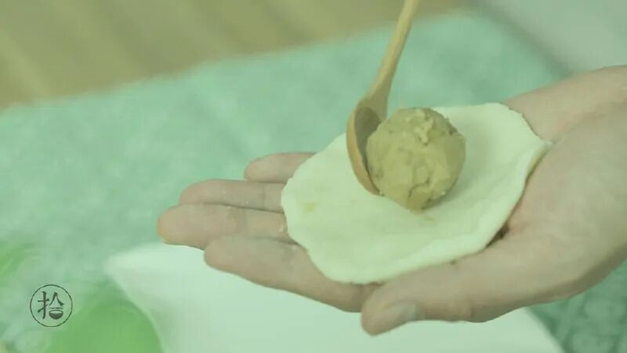包入栗子馅,搓成饼状。