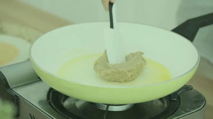 用黄油小火翻炒栗蓉,3分钟左右。