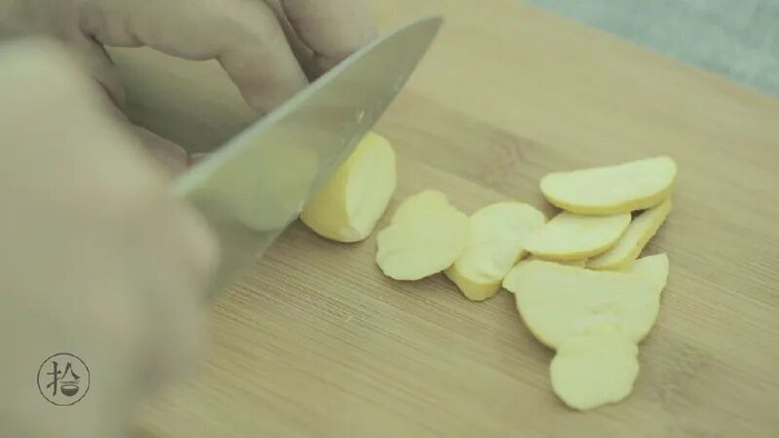 板栗切片,山药切块。