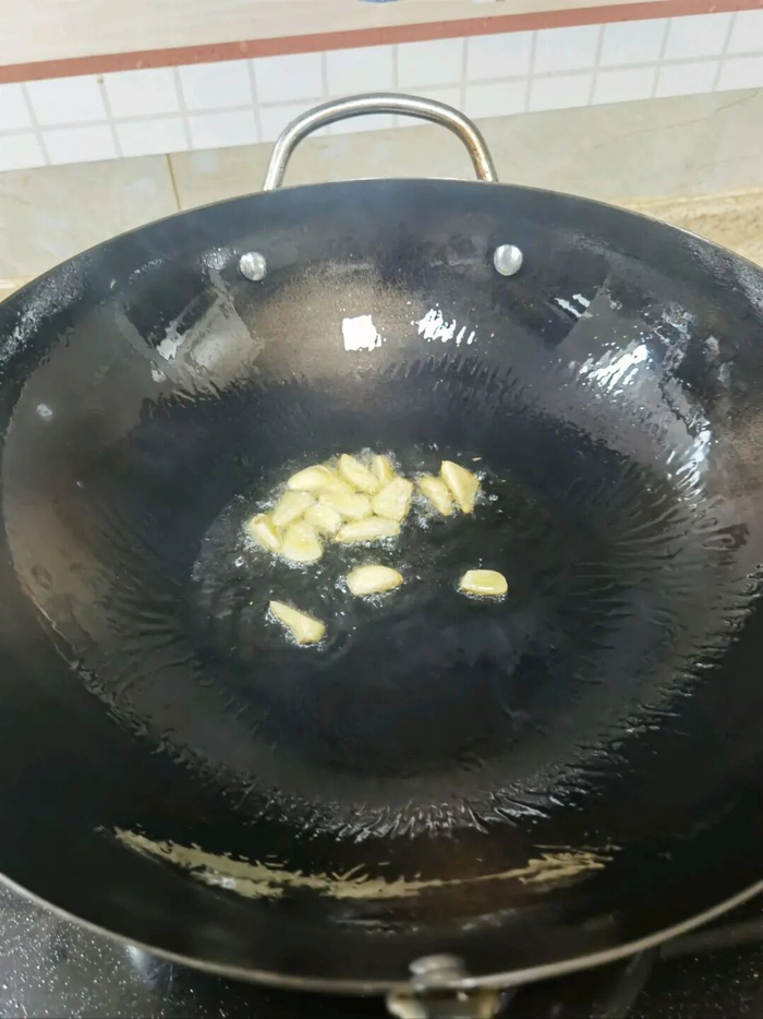 炒锅内留底油,放入蒜瓣炒香。