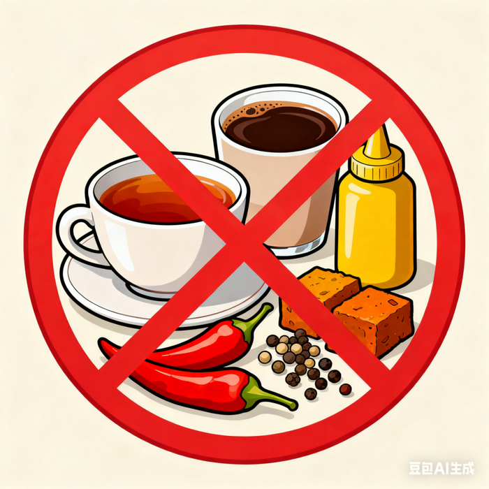 3️⃣ 避免刺激性食物如浓茶、咖啡、辣椒、胡椒、芥末、咖喱等。