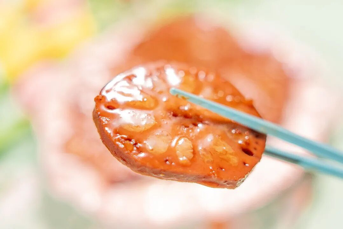 一刀切开,糯米与桂花交织成金黄的花纹,就像把整个秋天的味道,都藏进了这一段藕里。香甜暖心,是属于深秋的温柔治愈。