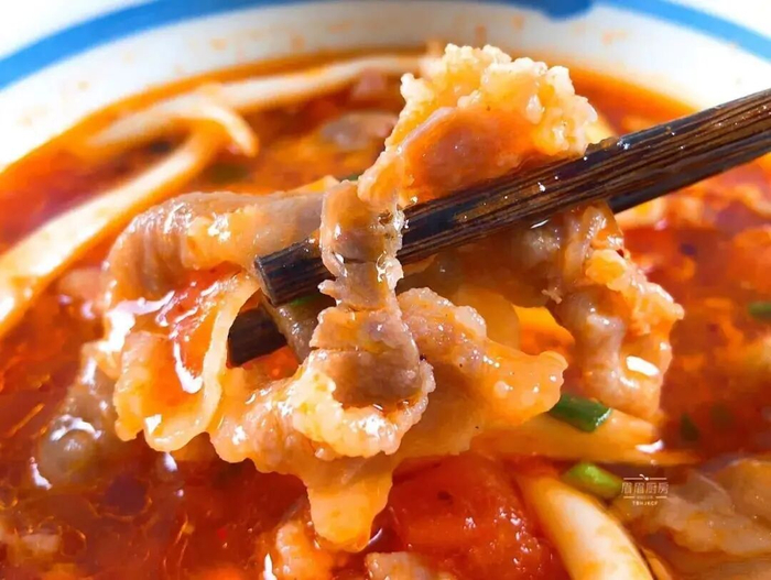 水开后加入肥牛,变色即可捞出,