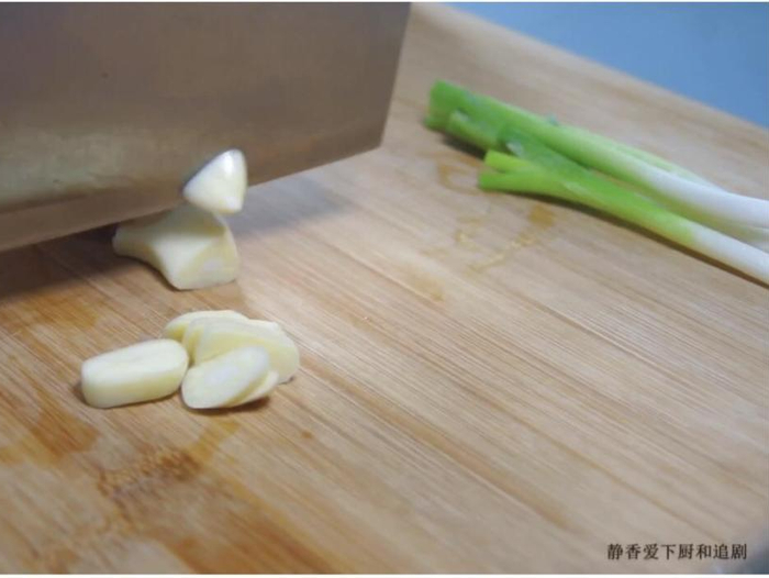 蒜切片,葱白切段。