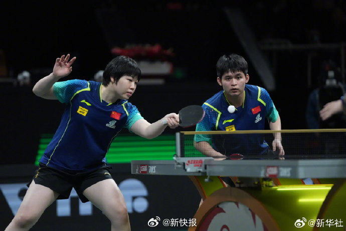 【#国乒混团9连胜#】#国乒8比0罗马尼亚队# 2024年成都国际乒联混合团体世界杯第二阶段最后一轮比赛中,国乒选手@林詩棟y 蒯曼@kuaiman0207 @王曼昱 @乒乓球梁靖崑 出战,以8:0战胜罗马尼亚队,以九连胜晋级本届比赛四强。(新华社)