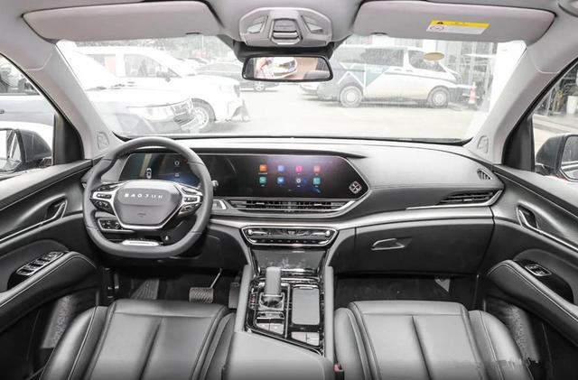 内饰的亮点不多,已经形成的宝骏家族式风格设计在这里一览无余。不过人家没有选择“烂大街”的悬浮大连屏,则是内嵌式的悬浮屏幕。而且还有全景天窗和360度全景影像以及一键启动。