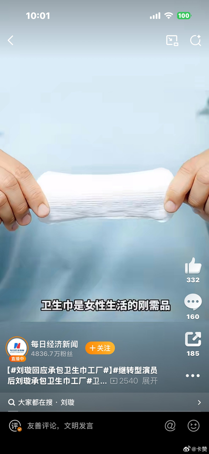 #刘璇回应承包卫生巾工厂##继转型演员后刘璇承包卫生巾工厂# 从奥运冠军到演员,现在又管起卫生巾工厂生产线,这跨度也是没谁了~卫生巾是女生的刚需,质量问题一直是块心病。她出来搞这个,就是想让咱们能用上靠谱的,这份对女性健康的上心必须夸!希望这种关注能倒逼行业把好质量关,让咱更多人都能安心用上放心的卫生巾~