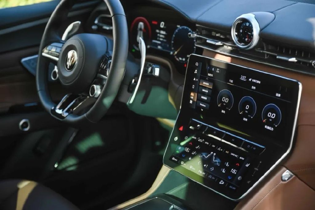 内饰方面,玛莎拉蒂终于也跟上了数字潮流,在格雷嘉的座舱内,各种屏幕成为了人机互动的主要界面。它们包括方向盘后方的全数字仪表盘、上下布局的两块中控屏,一排换挡按键就位于上下两块屏之间,还有中控上方的那个圆形数字时钟,它其实可以在时钟、指南针、踏板及G-meter之间进行切换。车机方面虽然没有时下的国产品牌那么丰富和智能,不过那块8.8英寸的中控屏胜在简单易用,比如需要调节空调温度时,手指轻按下去就会有明显的触控反馈。