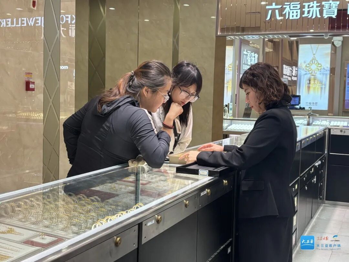 12月18日,在三亚海旅免税城一家黄金品牌店,消费者正在选购黄金。现场,一名消费者计划购买一件30克古法黄金饰品。店内免税金价为1187元/克,加工费约1250元,小计36860元。享受97折后为35754元,叠加政府消费券(满30000元减2400元),最终实付约33354元。而对比市场同类产品(含手工费1880元)的参考价约42470元,本次购买节省约9116元。