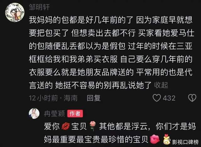 大儿子,邹明轩曾经在社交平台发文称妈妈穿几年前的衣服,要么就是她朋友品牌送的。最后一句:她挺不容易的别再乱说她了!冉莹颖为家庭的付出,最起码儿子是看到的,并理解她。
