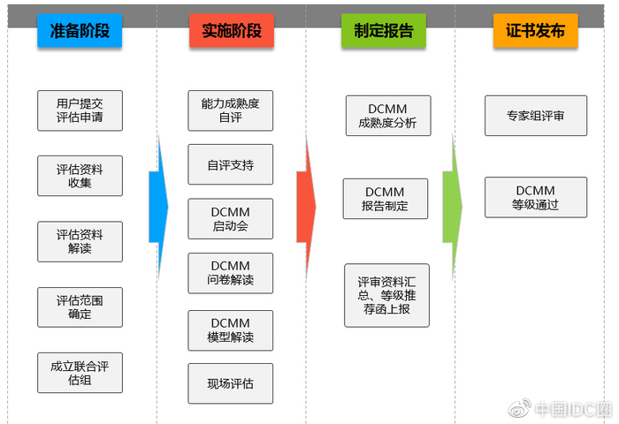 根据中国电子信息行业联合会的公开资料,DCMM评估分为以下四个阶段: