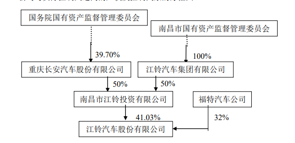 2022年1月,江铃汽车与福特汽车共同出资设立江铃福特汽车科技(上海)有限公司(以下简称“江铃福特科技”),江铃持股51%,福特持股49%。由于福特是江铃的大股东,因此福特在新合资公司中的直接和间接持股比例合计为65.32%。