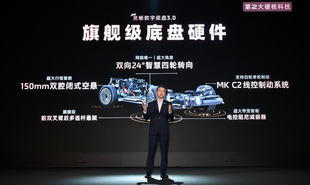 操控层面,智己LS9配备灵蜥数字底盘3.0系统,核心为同级唯一的双向24°四轮转向系统,使车长达5.3米的SUV实现4.95米转弯半径,接近小型车水平。悬架部分采用150mm行程双腔空气悬架与智能电控阻尼系统,支持多模式调节。同时,车辆集成灵蜥爆胎稳定控制、主动防侧翻3.0等功能,强化行驶安全性。官方称其为最好开的大六座SUV,试图打破传统大型SUV笨重、灵活性差的固有印象。