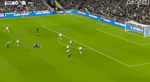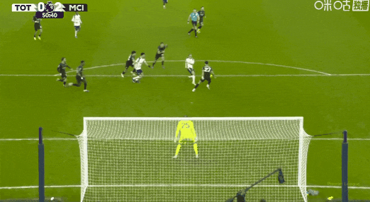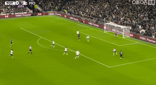 第52分钟,索兰克突入禁区破门,VAR介入后确认进球有效!热刺1比2曼城!