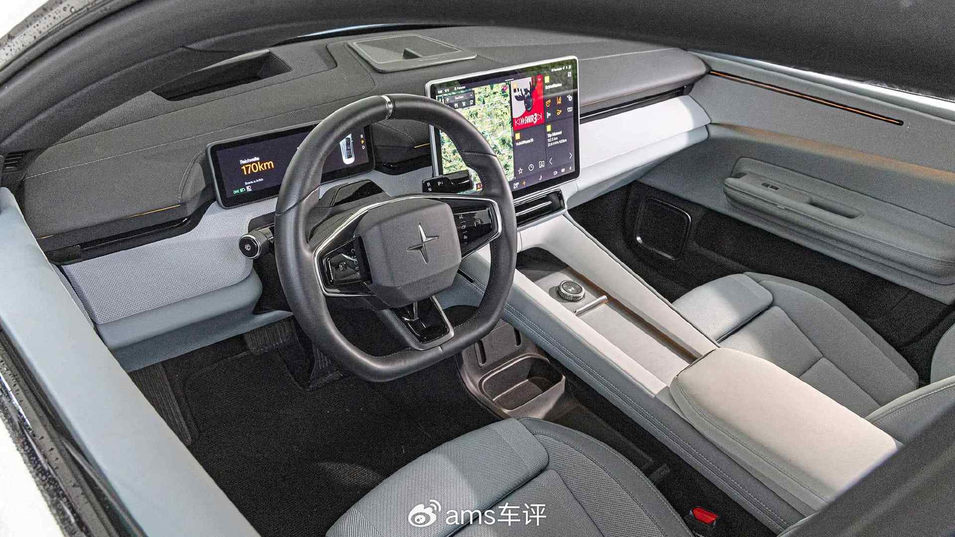 极星内饰中大量明亮、甚至带有背光的材质,散发着一丝“沃尔沃味道”——其高级感明显优于EV6与Model Y。从特斯拉换到极星,在操作逻辑上却很遗憾:同样取消了后视镜和方向盘的实体调节按键,而方向盘上的无背光按键在夜间几乎无法准确操作。