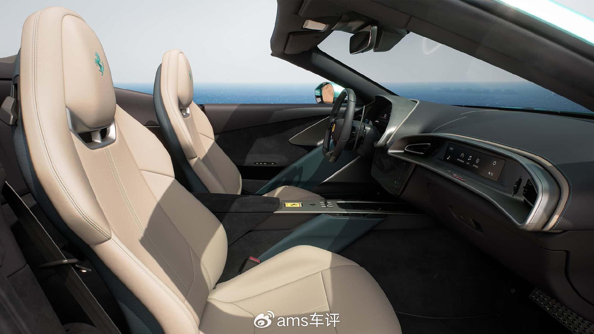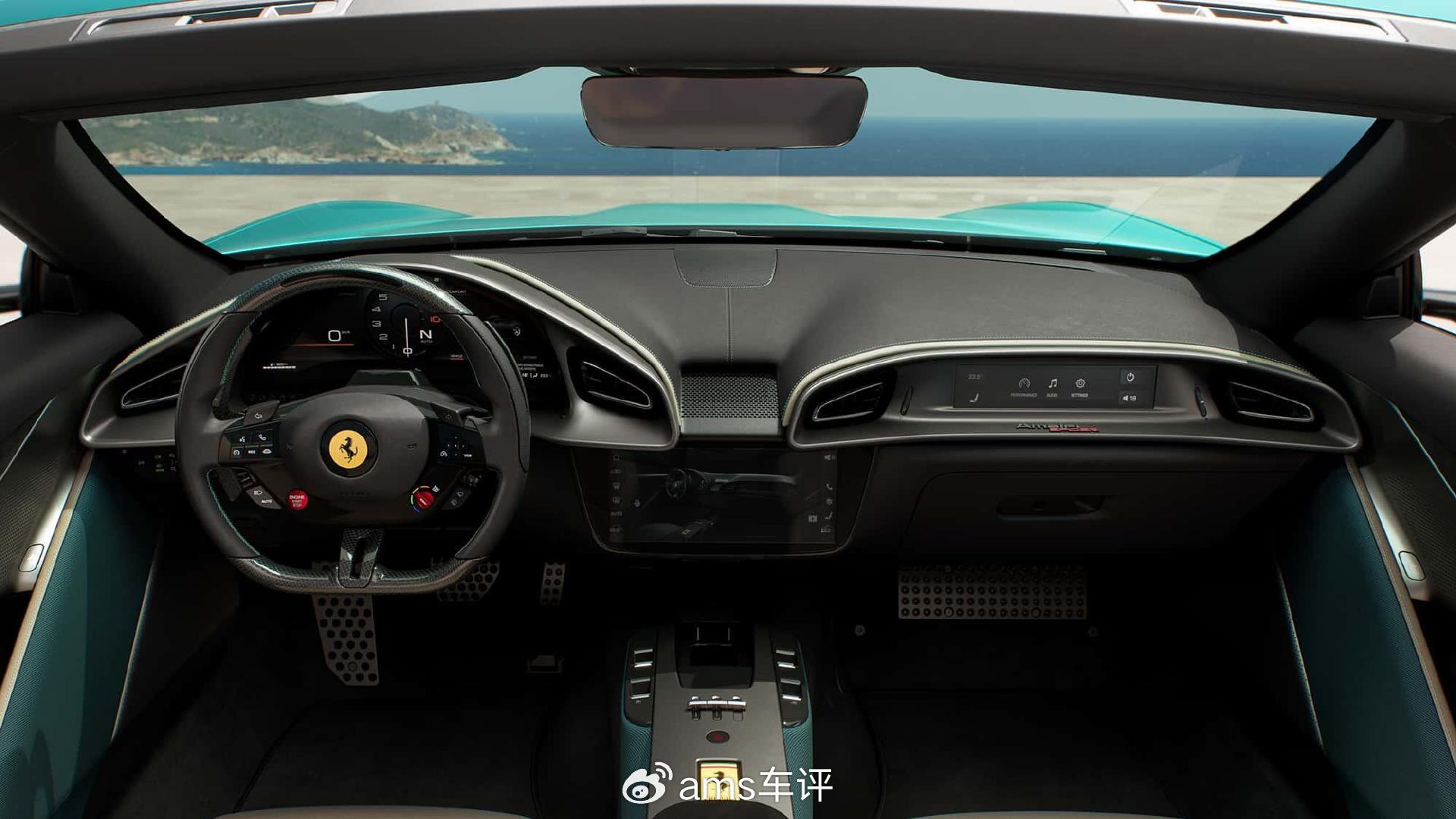 多功能方向盘回归符合人体工学、操作直观的物理按键。中控台设有钥匙放置槽,以及敞篷与挡风板控制按键。挡风板可从后排座椅靠背处伸出,最高支持170公里/小时车速下使用。法拉利将Amalfi Spider定义为2+2座车型,后排空间主要用于存放行李。