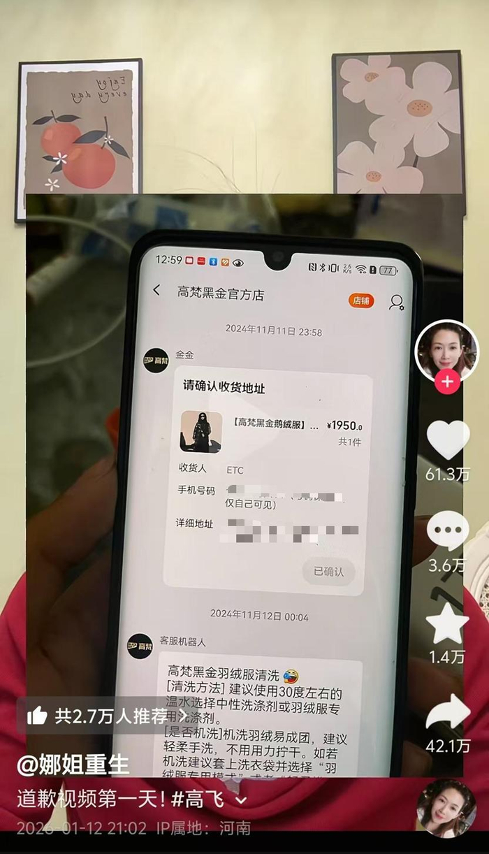 自1月12日起,牛娜已连续发布4天道歉视频,以“服从判决”名义开启“道歉连续剧”,单条视频点赞量超50万。视频附上了丈夫为第三者购买奢侈品的消费记录,以及法院判决书和此前她发布的侵权内容,反讽丈夫“满足职工物质与生理需求”“两人是真爱”等,相关内容持续引发热议,其账号目前粉丝量已达283.9万。(据1月16日红星新闻)