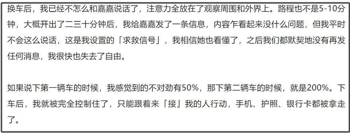 这时候也该看一眼女友嘉嘉的采访了,对于她营救男友王星的过程,可谓全程干货,建议阅读全文,这里就看一个细节。