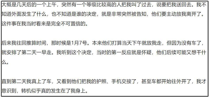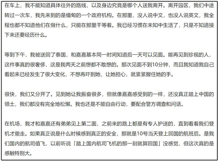 突然有一天,一个级别高的人就把王星叫出来,对王星说要把他送回去,从缅甸到泰国再到回国的航班,在真正踏上中国领土之前,王星和女友嘉嘉都不敢松懈,此时事件还未定性,王星不能自由行动,要配合警方调查和问话。