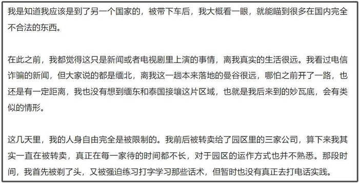 接下来的细节就是有关王星被卖进园区的经历了,短短几行字,越看越后怕。