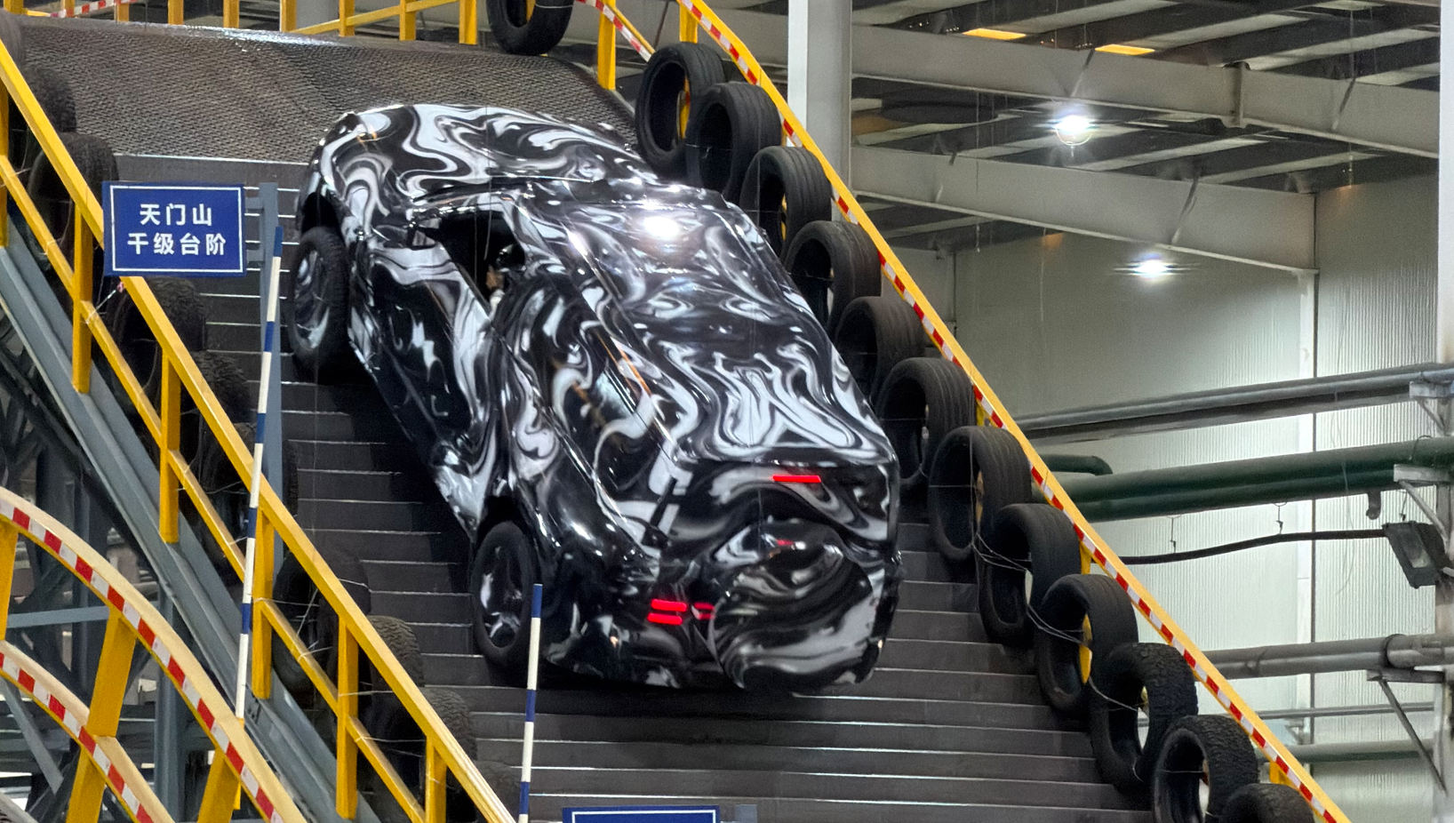 定睛一看,台阶旁边还立了个牌子,上面赫然写着五个大字“天门山千级台阶”。看来,比亚迪把天门山天梯搬进了厂房,来给新车搞测试了。