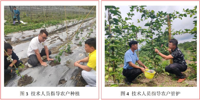 为确保农户能够充分利用优质种苗,引导群众对百香果进行规模化、规范化种植,实现百香果种植的高产高效,公司组建一支专业的技术服务团队,负责为农户提供全程的种植技术指导和咨询服务,从种植前的土地准备、苗木移栽,到种植过程中的施肥、打药、病虫害防治等各个环节,技术服务团队给予农户及时、有效的生产技术指导和方案。