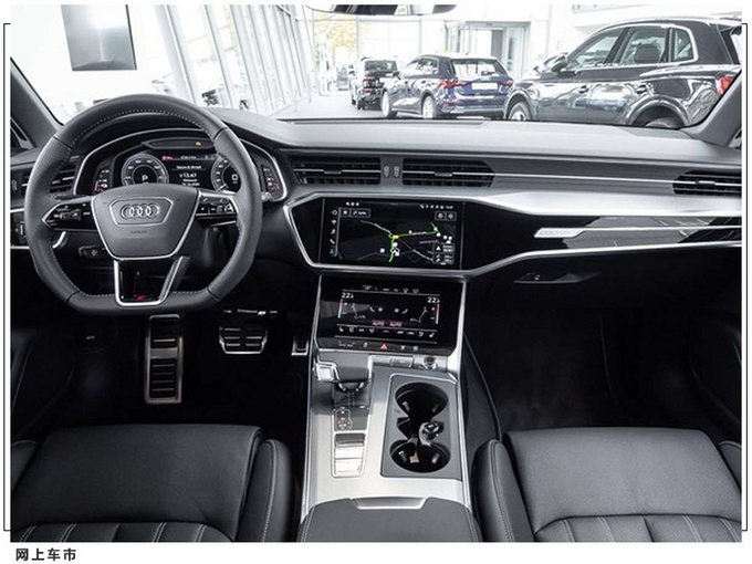 新车配备了奥迪家族经典的大尺寸六边形进气格栅,熏黑设计更显运动。车身侧面简洁修长,配备多辐式银色轮毂,搭配红色高性能卡钳和运动轮胎。车尾灯外罩采用了轻度熏黑处理,双边单出排气口为多边形设计,保留了商务风格。