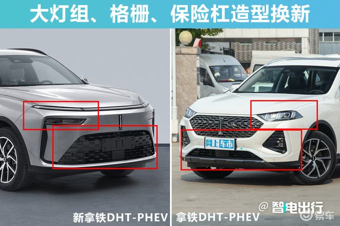 新拿铁DHT-PHEV前脸采用蓝山(配置|询价)同款设计语言,分体式大灯组与摩卡DHT-PHEV相同,下进气格栅面积更大,内部点阵装饰;新车侧面变化不大,车窗饰条和行李架改为亮黑色涂装;车尾分体式灯组同样与摩卡DHT-PHEV保持一致,保险杠造型更加简洁。