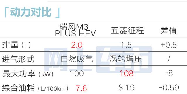 瑞风M3 PLUS HEV车身尺寸和外观与M3 PLUS完全一致,车高优于五菱征程,车内升级皮质座椅与航空铝地板,配备科大讯飞智能语音等智能配置。