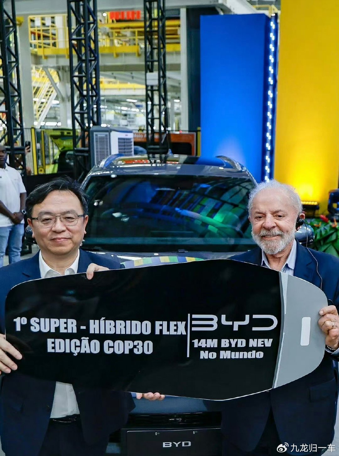 比亚迪最近在巴西工厂举行了1400万台新能源汽车下线仪式,巴西的总统和副总统都到场了,总统卢拉先生还专门发表了激情演讲,拉着船夫哥的手像兄弟一样,称这是“人生中最难忘的一天”。