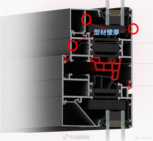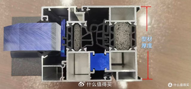 型材结构阵主看攻略的时候有些博主讲的特别细,比如分几个腔、密封胶条搭载量如何、是否闭口压线。我本人是记不太清,后来拿着自己记的笔记去各大系统门窗门店去看,感觉只要是正规一点的系统门窗品牌,型材结构大都大差不差,所以我觉的没必要看那么细。但是有一点一定要看清楚,那就是型材的壁厚。新国标规定窗户主腔的厚度为1.8mm,有些厂家为了节约成本,除了主腔的壁厚为1.8,其余的都做的比较薄,这样就有点偷工减料了,所以一定要看好窗户型材的通体厚度是不是都是一致的。
