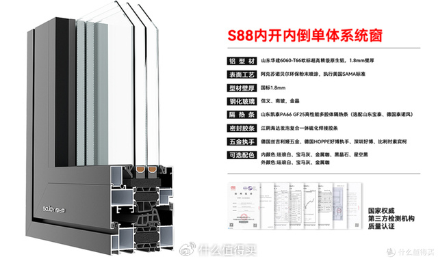 除了型材结构配置,玻璃、铝材、隔热条、密封胶条、五金阵主统一把他们叫作配件。玻璃已经讲过了,一定要带3C认证。铝材有很多厂家,忠旺、凤铝、实德等都是,不管是哪个厂家,一定要选6063-T5/T6或是6060-T66型号的铝材,其中6060-T66型号的铝材强度更高,但是前者也足够用。